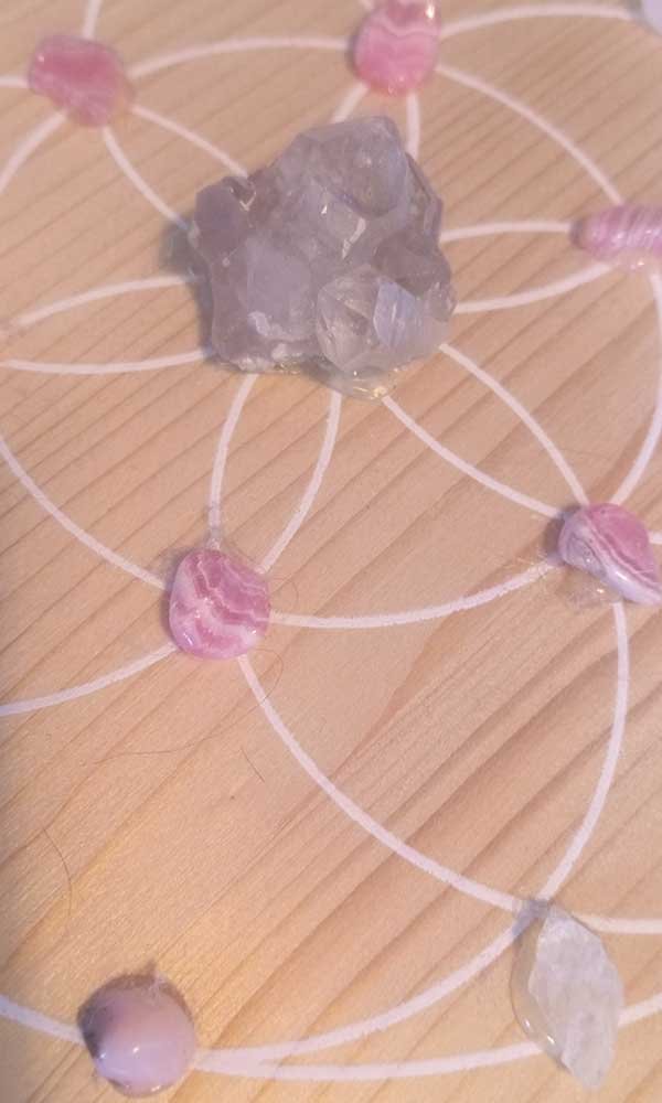 In der Praxis oder in einem speziellen Workshop biete ich dir die Möglichkeit, dein ganz persönliches Stonegrid zu erstellen. Dabei wählst du zusammen mit mir die Edelsteine aus, die für deine aktuellen Themen und Bedürfnisse die größte Wirkung haben. Es ist eine wunderbare Methode, um die energetische Kraft der Edelsteine mit deinen individuellen, gesundheitlichen, psychischen Themen und Wünschen in Einklang zu bringen.